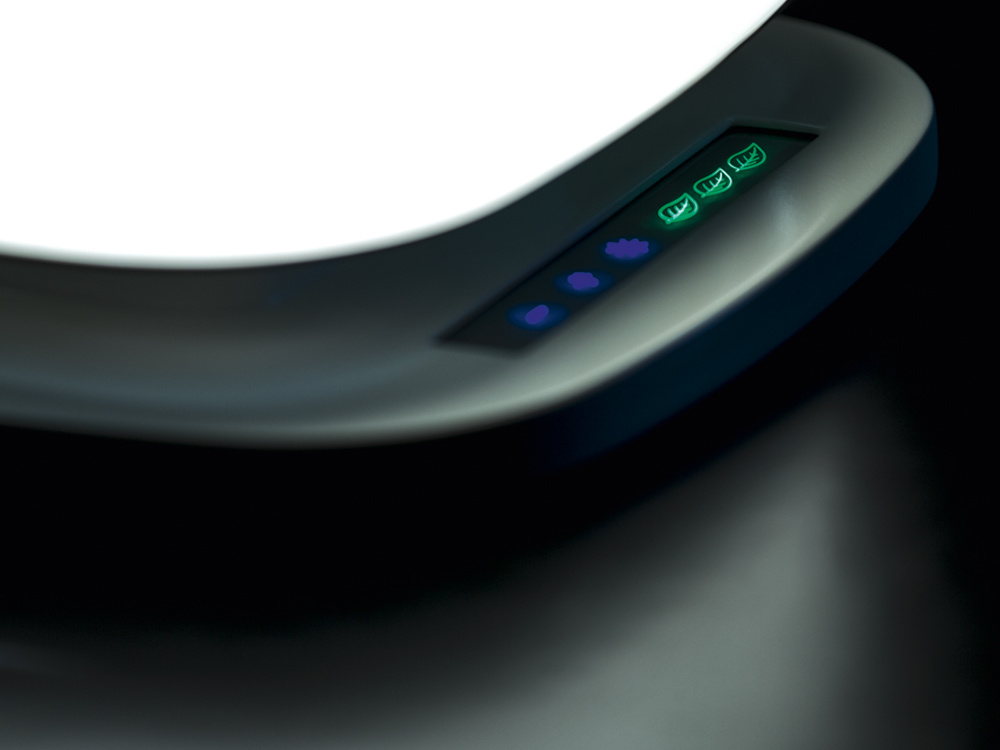 - Nový produkt prezentovaný firmou Falmec s funkcí ionizátoru a lampou s nastavitelnou intenzitou LED osvětlení.
