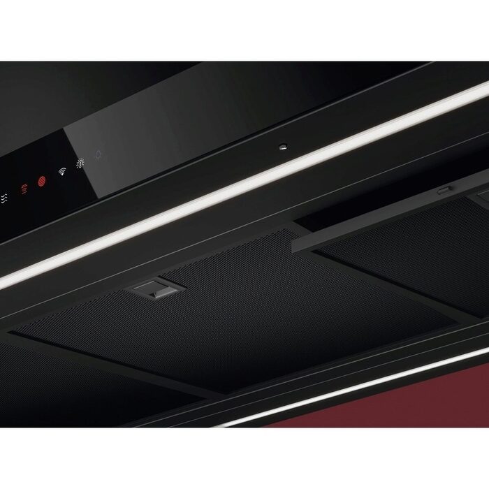 AuroraTech® automaticky přizpůsobuje barvu a intenzitu světla odsavače par podle denního času, abyste dosáhli perfektního kuchyňského prostředí a zvýšili své pohodlí. Abyste aktivovali chytré osvětlení, použijte aplikaci.