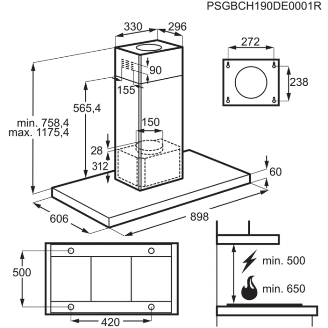 - Rozměry V x Š x H (mm): 758 x 898 x 606