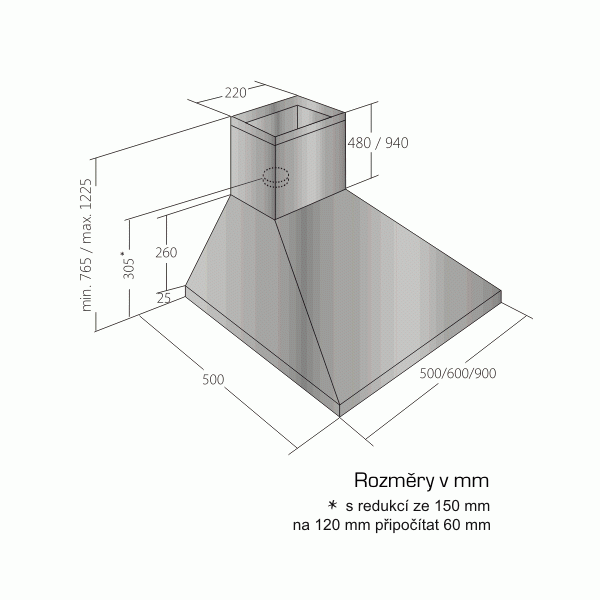 - Průměr odtahu: 150, zdarma redukce 150 / 120 mm