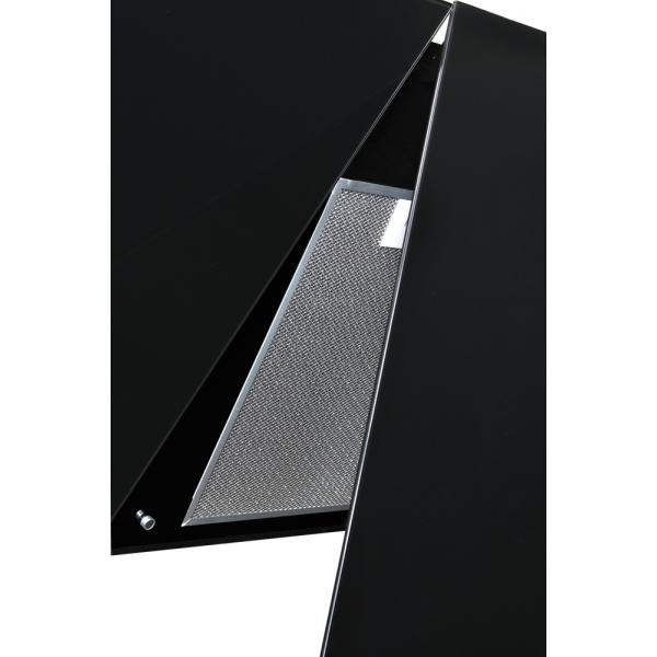 Komínová digestoř ke zdi, šíře 50 cm, nerez / černé sklo, max. výkon 297 m³/h (15 Pa), hlučnost Lw 51 – 61 dB(A), 3 rychlosti, odsávací jednotky mají individuálně vyvažovanou turbínu, motory jsou opatřené vratnými tepelnými pojistkami (při přetížení motoru vypne, po jeho vychladnutí opět sepne), mechanické tlačítkové ovládání, kovové sendvičové tukové filtry, které lze mýt v myčce, možnost práce v odtahovém i recirkulačním režimu, výstupní průměr 120 mm,