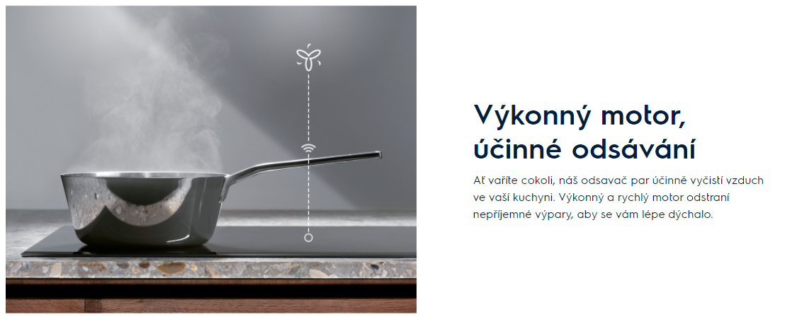 Funkce Hob2Hood® bezdrátově propojí varnou desku s odsavačem par. Začněte vařit a odsavač bude automaticky měnit intenzitu odsávání podle výkonu varné desky. Vy se tak můžete plně soustředit na přípravu jídla.