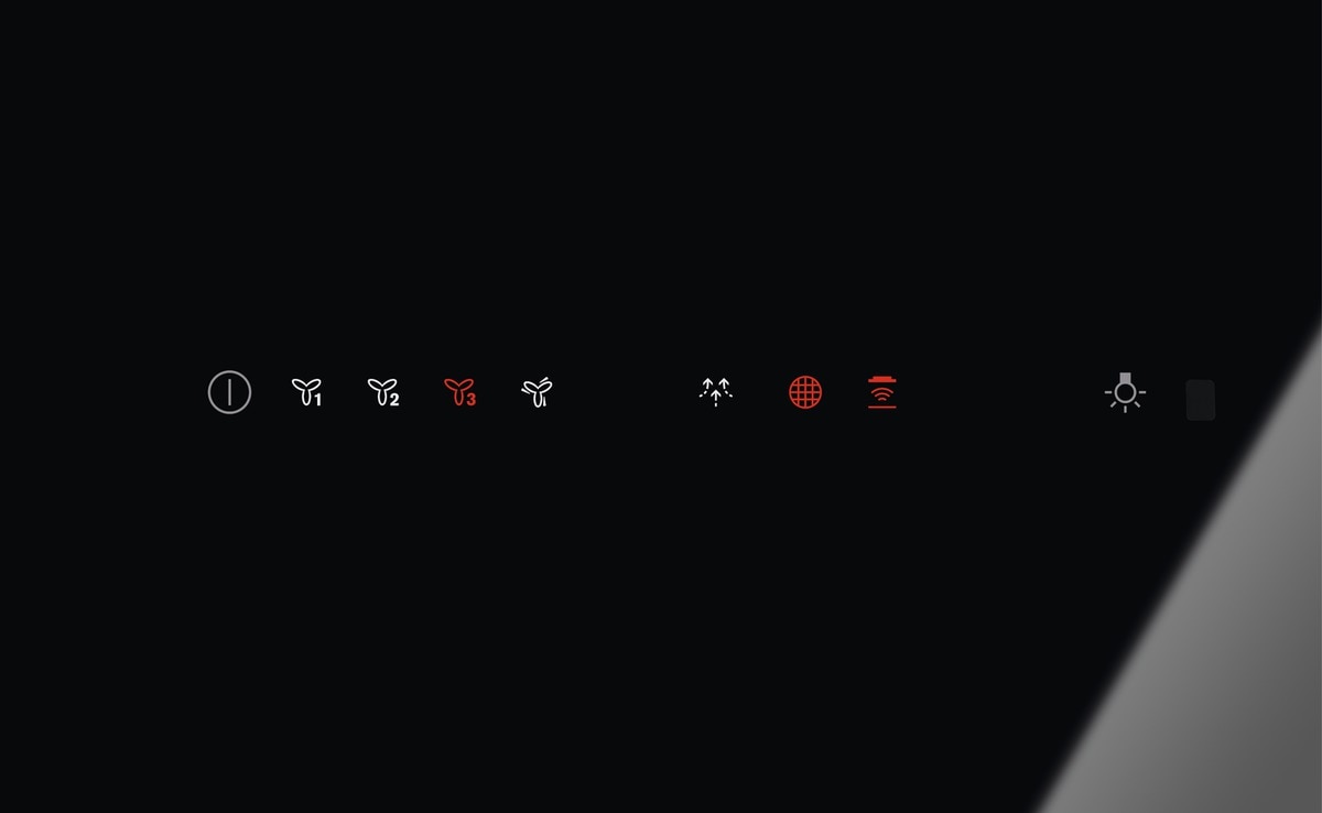 Náš skleněný ovládací panel je stylový a plně integrovaný. Elektronické dotykové ovládání vám umožňuje snadno a přesně regulovat intenzitu odsávání.