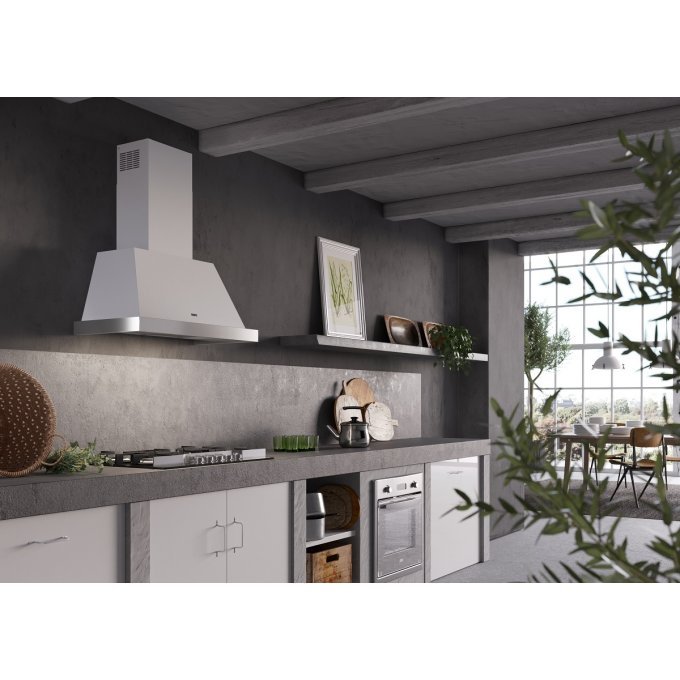 Rustikální digestoř Thea v sobě snoubí vintage styl s moderním designem a nabízí nadčasovou eleganci spojenou se špičkovým výkonem. Odsavač Thea v bílém provedení mat je osazen výkonnou ventilační jednotkou EVO, která zajistí vysokou účinnost při nízké spotřebě energie. Zajímavostí je také LED pásek na spodní části digestoře, který dokonale osvětlí pracovní plochu. Foto je pouze ilustrační, pro dokonalý vzhled digestoře je třeba dokoupit obrubu v nerez provedení nebo v provedení dub durmast, ze stejného dřeva lze také zakoupit polici. V základním provedení je digestoř dodána bez obruby.