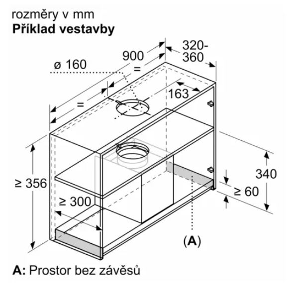 - rozměry pro vestavbu (V x Š x H): 340 x 860 x 300 mm