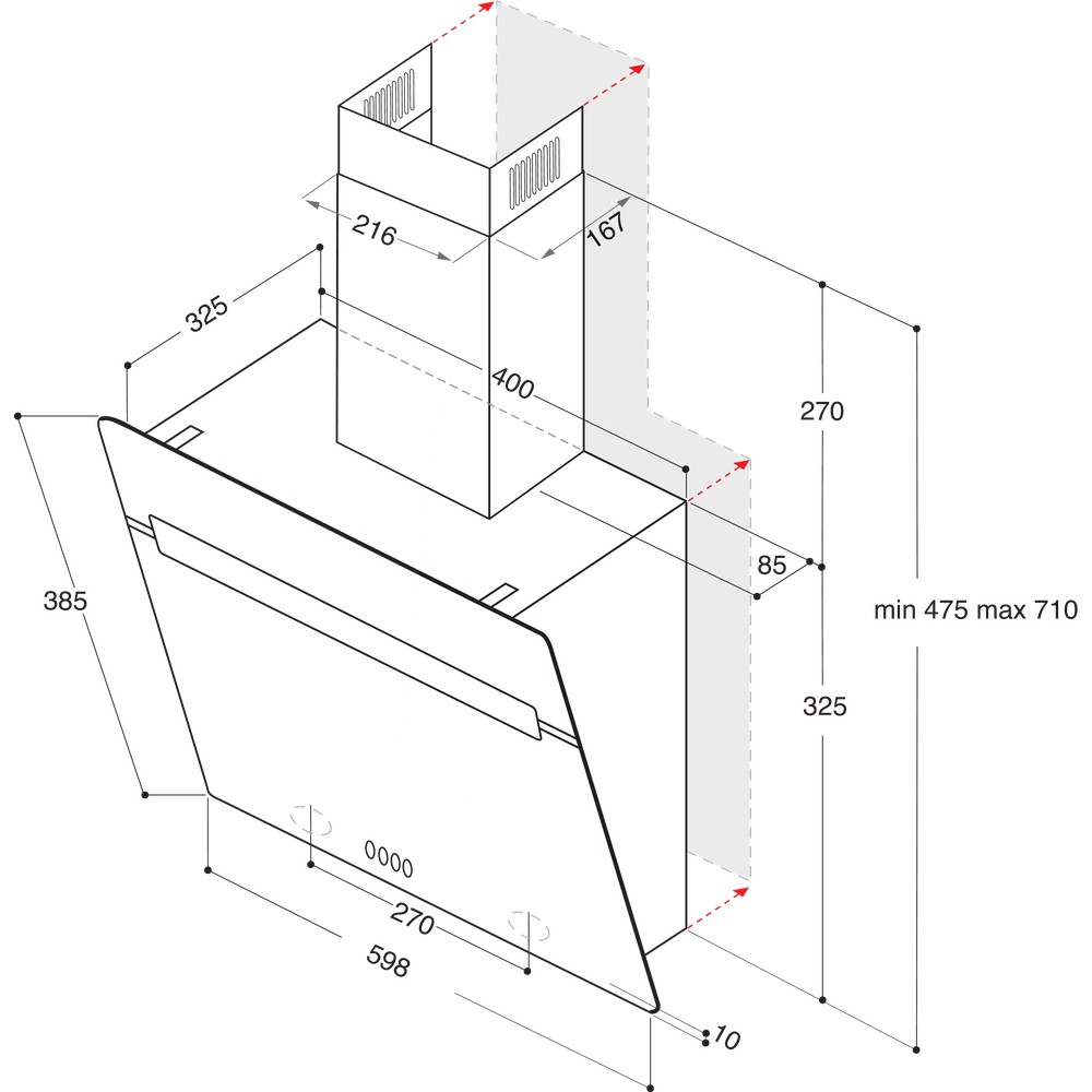 - Min. vzdálenost od plynové varné desky: 650 mm