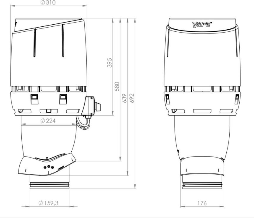 Externí ventilační jednotka od finského výrobce VILPE je vhodná pro instalaci na jakoukoliv střechu - rovnou či šikmou (maximální sklon 57°). Energeticky úsporný izolovaný střešní ventilátor ECO FLOW obsahuje stejnosměrný motor s řízením 0-10V německé výroby EBM, který dosahuje výkonu 925 m3/h. Vyznačuje se lehkostí konstrukce (vnější plášť je zhotovený z vysoce kvalitního polypropylenu), vysokou odolností proti mechanickým poškozením a nepříznivým podmínkám. Anti UV složka zajišťuje stálobarevnost použitého materiálu. Motor je umístěn ve výšce 0,5 m nad úrovní střechy, takže nehrozí nebezpečí zafoukání sněhem v zimních měsících. Externí motor na střechu je kompatibilní se stropními digestořemi FABER, které jsou osazeny plochým radiálním motorem.