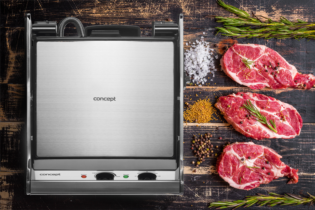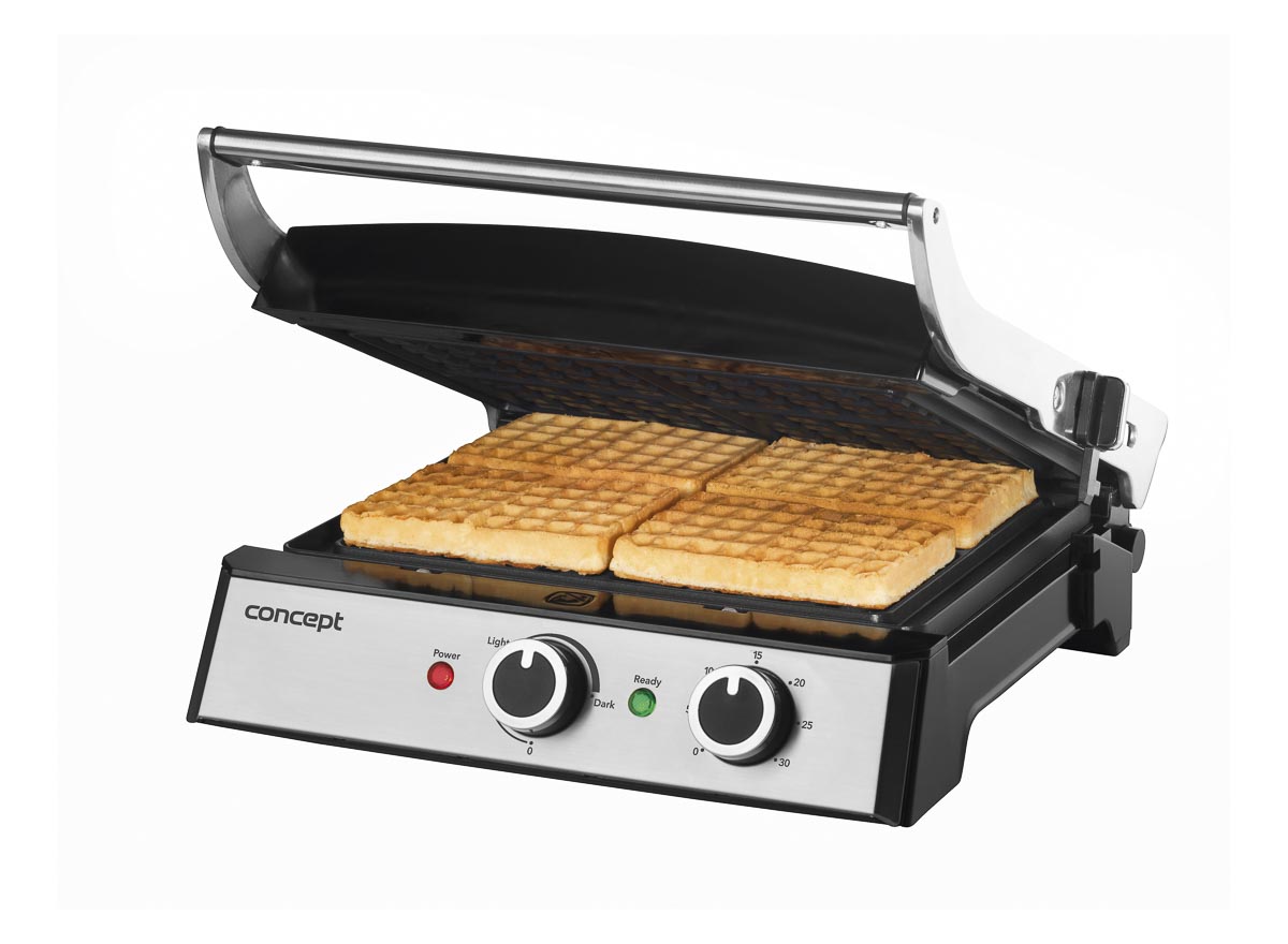 - Chcete si dopřát šťavnaté steaky, křupavou zeleninu, panini nebo slaďoučké vafle kdykoli si zamanete? Nemusíte mít kuchyňskou linku plnou spotřebičů. Na všechny tyto dobroty Vám bude stačit jeden jediný přístroj. Elektrický kontaktní panini gril 3 v 1 od Conceptu.