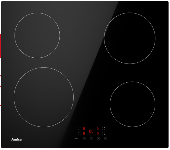 - Indukční varná zóna 16 cm (1,2 kW): 2 ks.