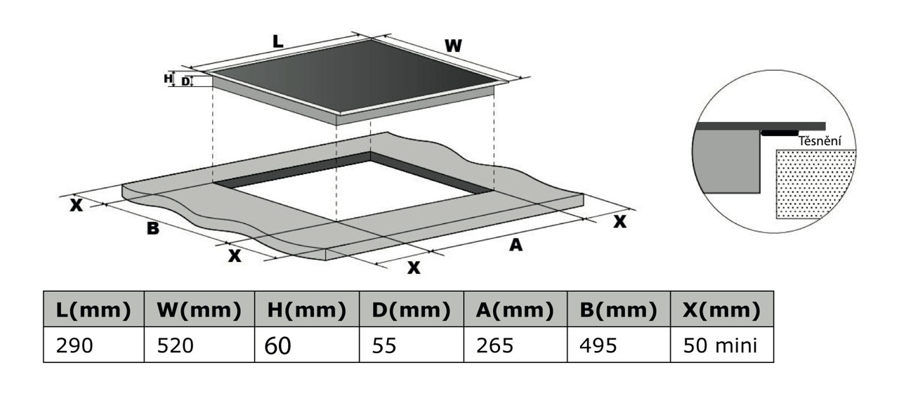 - Rozměry pro vestavbu ŠxH – 26,5 x 49,5 cm