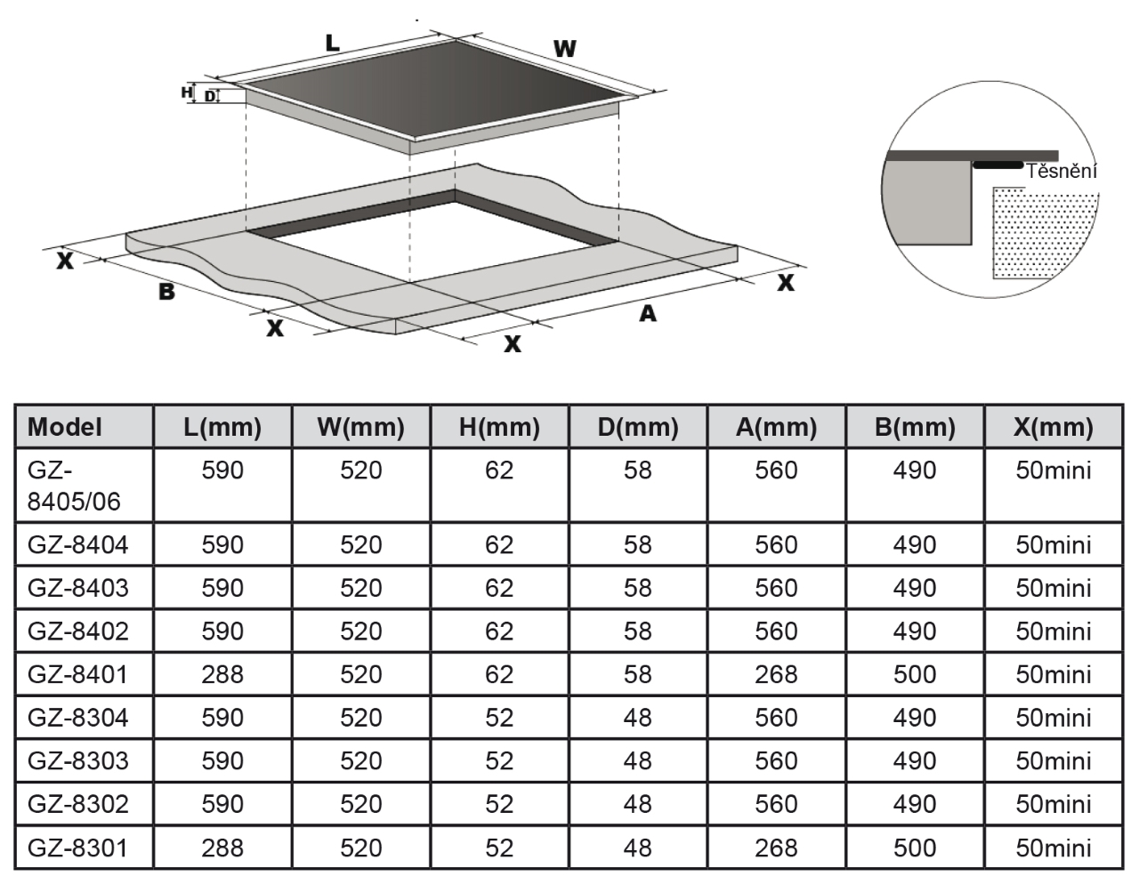 - Rozměry pro vestavbu ŠxH – 560 x 490 mm