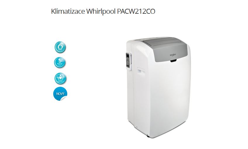 Kvalitní přenosná klimatizace Whirlpool PACW212CO je řešením pro ochlazování vzduchu v místnosti. Klimatizace vzduch zchlazuje, ventiluje a odvlhčuje.