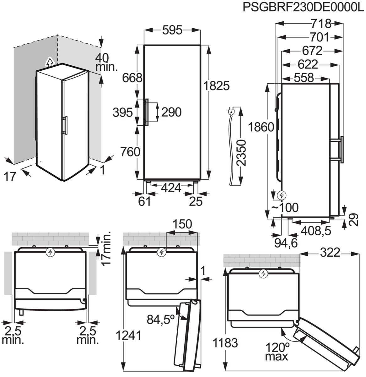 - Rozměry spotřebiče VxŠxH (mm): 1860 x 595 x 650