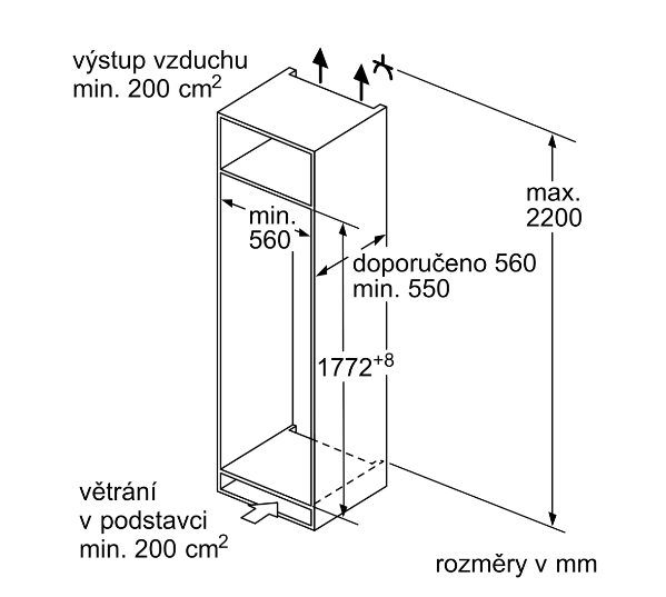 - Minimální šířka niky 560 mm