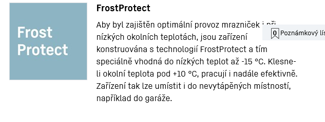 - Rozsah teploty mrazící cást -14 °C až -28 °C