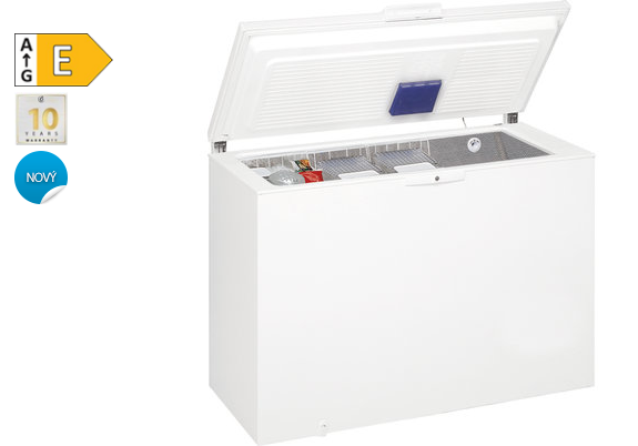 Volně stojící truhlicová mraznička WHE39352 FO má využitelný objem 394 litrů a zaručuje bezpečné uložení vašich oblíbených potravin.