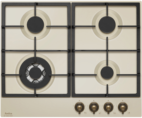 - Plynové, kombinováné sporáky a plynové desky Amica jsou vybaveny elektrickým zapalováním. Stačí zmačknout knoflík, následně otočit a vybraný hořák se automaticky zapálí.
