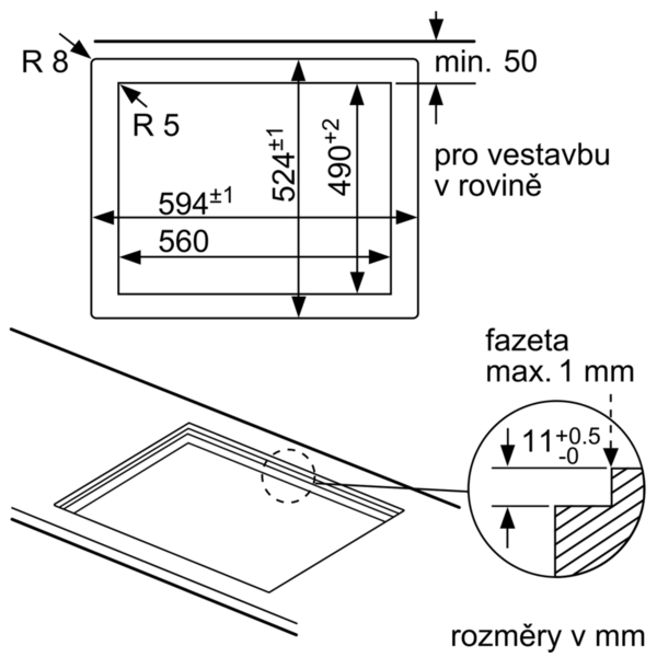 - rozměry pro instalaci: (V x Š x H) 45 mm x 560 mm x 480 mm