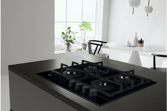 Přednosti této plynové varné desky Whirlpool: vysoce účinné hořáky, pro snížení spotřeby energie.
