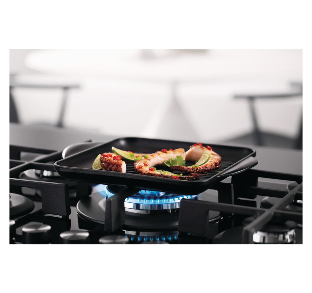 Dvojkorunkový hořák vám zajistí velmi vysoký výkon během chvilky a rovnoměrné rozložení tepla díky dvěma plamenovým prstencům.