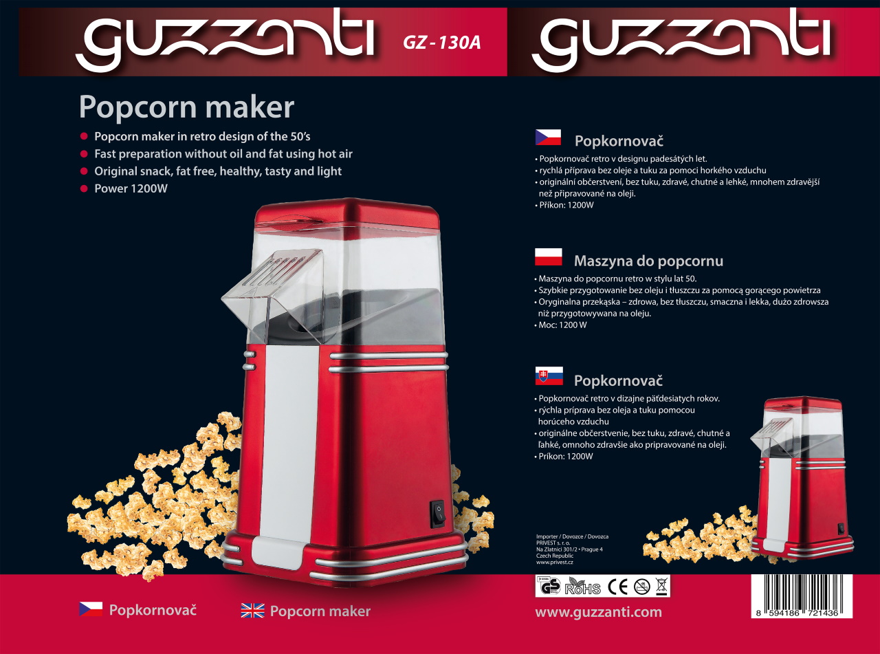 - Popkornovač Guzzanti GZ 130A v RETRO designu padesátých let.