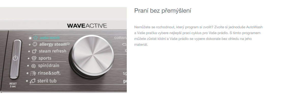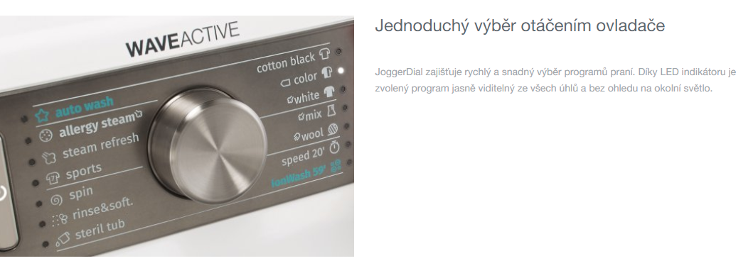 - Buben WaveActive pro vynikající výsledky praní bez poškození prádla