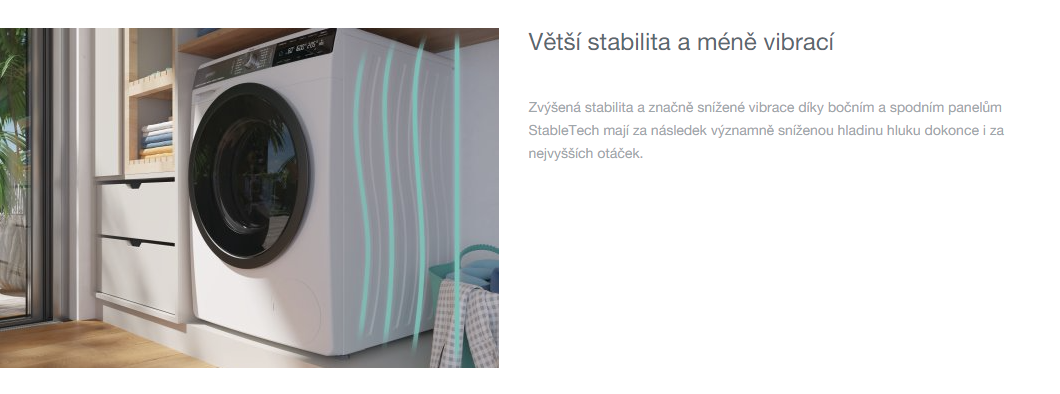 - StableTech boční stěny - výrazně snížené vibrace a vyšší stabilita během praní