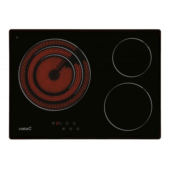 CATA TT 5003 disponuje 3 varnými zónami, jedna z nich je přepínatelná ve 3 velikostech až na 27 cm, deska se hodí do úzkých pracovních desek