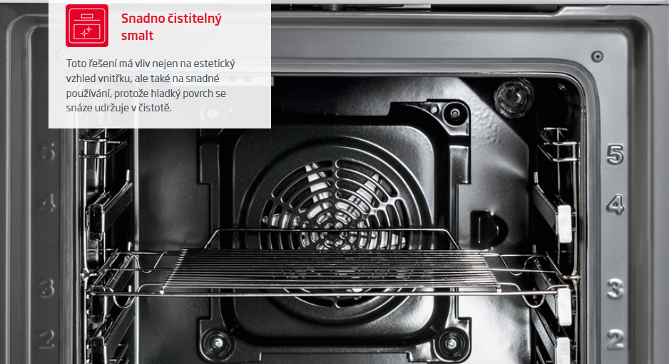 Díky speciálnímu typu povrchu trouby se tuk nepřichytává k jejím stěnám. Značně usnadňuje čištění trouby.