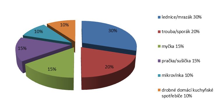 Graf průměrné spotřeby elektřiny v domácnosti – rozděleno mezi jednotlivé kuchyňské spotřebiče: