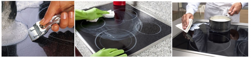 - K dosažení výborného výkonu desky patří její pravidelná údržba. Nenechávejte připečené fleky na desce, odstraňte je například škrabkou či leštící pastou.