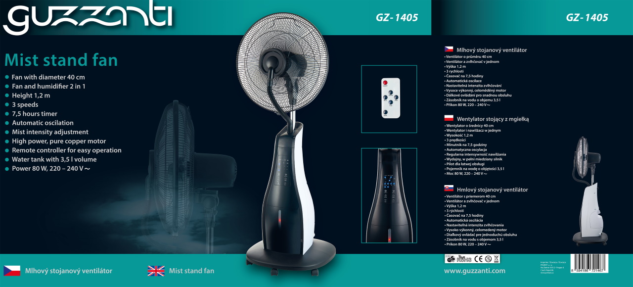 - Mlhový stojanový ventilátor Guzzanti GZ 1405