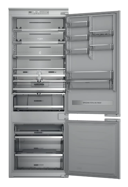 Přednosti této vestavné kombinované chladničky Whirlpool: vysoký spotřebič, který vyhoví potřebám vaší rodiny. Skleněné police, které poskytují pevnost i eleganci. Ventilátor, který zajišťuje plynulé a rovnoměrné proudění vzduchu v prostoru spotřebiče pro doonalou cirkulaci vzduchu. Senzory 6. SMYSL, které automaticky snižují teplotu uvnitř spotřebiče po při+G490dání nových potravin, čímž snižují spotřebu energie. Robustní přihrádka na lahve pro bezpečné uložení lahví.