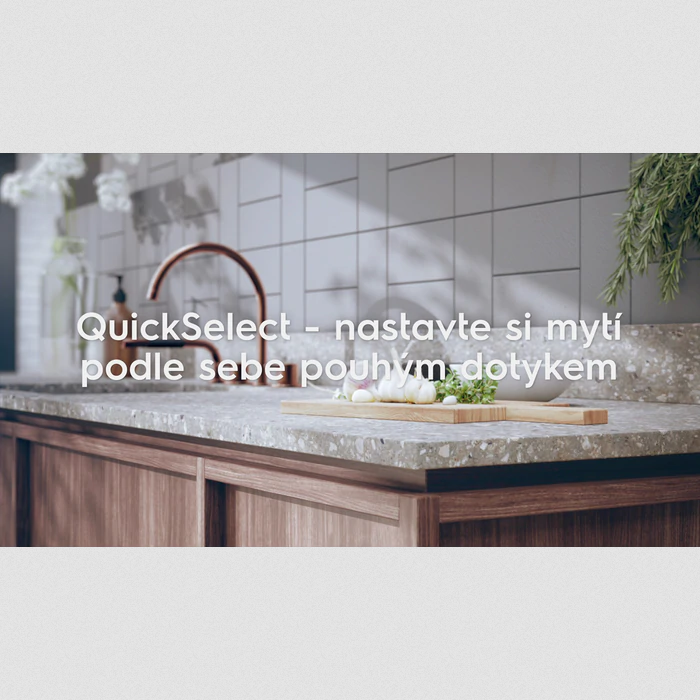 Intuitivní ovládání QuickSelect představuje snadný způsob, jak upravit a spustit mycí program. Posuvným tahem zvolíte délku programu a poklepáním přidáte různě volitelné funkce — jednodušší už to být nemůže.