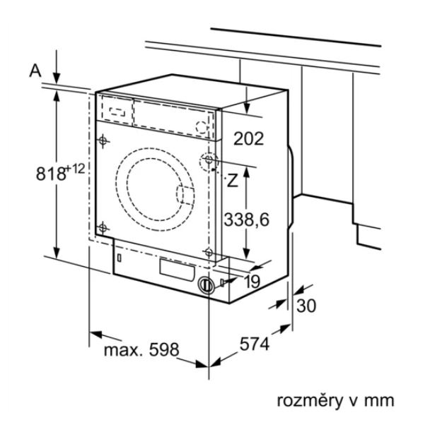 - hloubka spotřebiče vč. dvířek: 57.4 cm