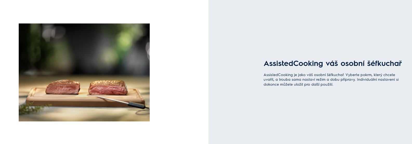 AssistedCooking je jako váš osobní šéfkuchař. Vyberte pokrm, který chcete uvařit, a trouba sama nastaví režim a dobu přípravy. Individuální nastavení si dokonce můžete uložit pro další použití.