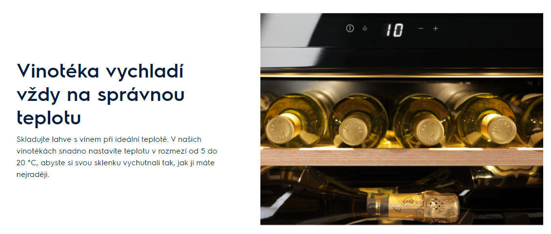 Skladujte lahve s vínem při ideální teplotě. V našich vinotékách snadno nastavíte teplotu v rozmezí od 5 do 20 °C, abyste si svou sklenku vychutnali tak, jak ji máte nejraději.